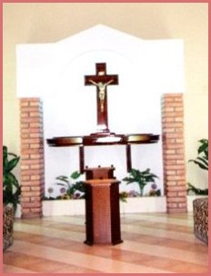 Cochería Norte Beneficios SRL. Santiago del Estero Capital. Sala en cedro con cristo en bronce.
