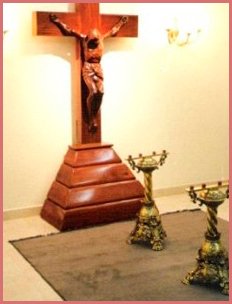 Empresa Abraham Gubaira. Santiago del Estero Capital. Sala bronce y quebracho con cristo tallado a mano.