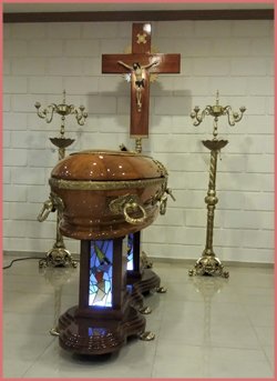 Capilla Bronce con araña y base de madera con vitraux. Vértice s.r.l.