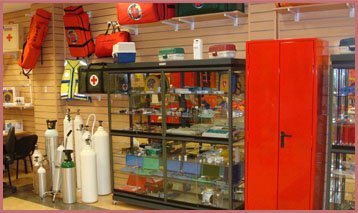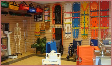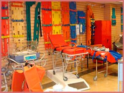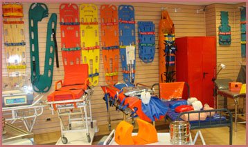 Equipamiento completo de emergencias médicas, trauma, inmobilización, rescate, reanimación, traslado. Cochería bomberos o emergencias médicas.